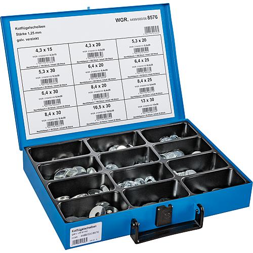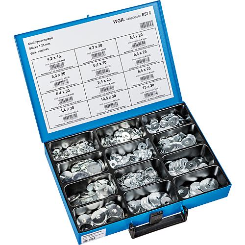 Sortimentenkoffer bestückt: Kotflügelscheiben, Galvanisch verzinkt